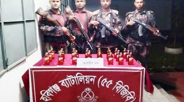 চুনারুঘাট সীমান্ত এলাকায় ১৬৮ বোতল মদ উদ্ধার