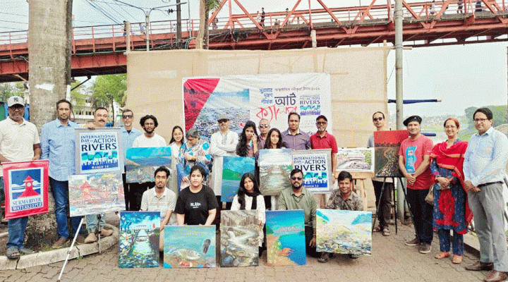 সুরমার দূষণ’ শীর্ষক এই আর্ট ক্যাম্পে চারুশিল্পীদের রংতুলিতে উঠে আসে সুরমা দূষণের ভয়াবহ চিত্র।