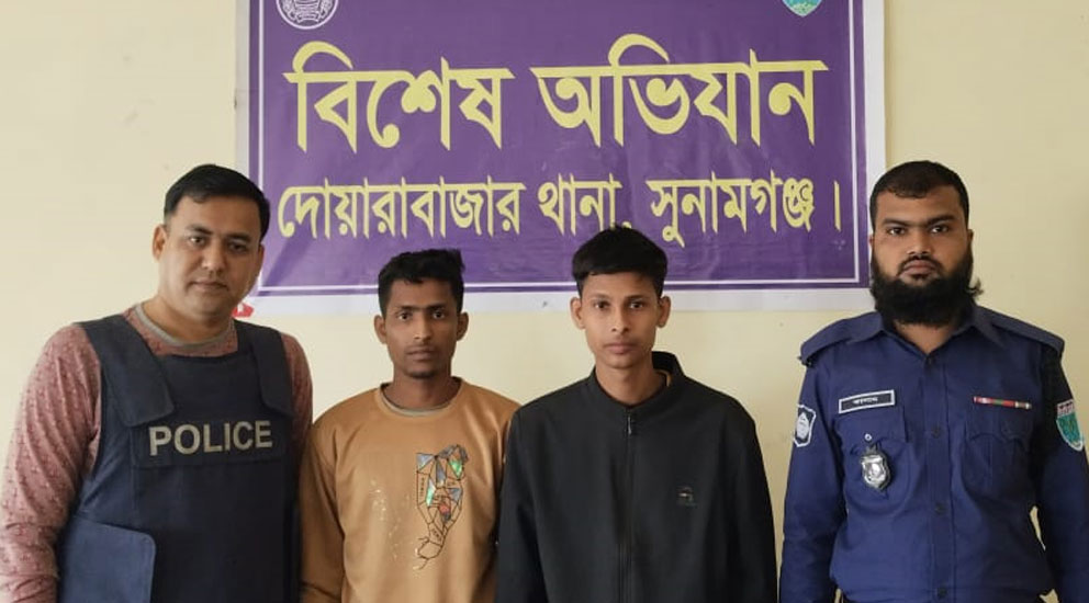 দোয়ারাবাজার, সুনামগঞ্জ প্রতিনিধি : দোয়ারাবাজারে হাসান হত্যা মামলার প্রধান দুই আসামি দুই ভাই হাসাইন আহমেদ নেইমার (২০) ও হোসাইন আহমেদ